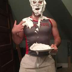 Gungemanc was surprised by Mattey with a big sloppy cream pie to the face